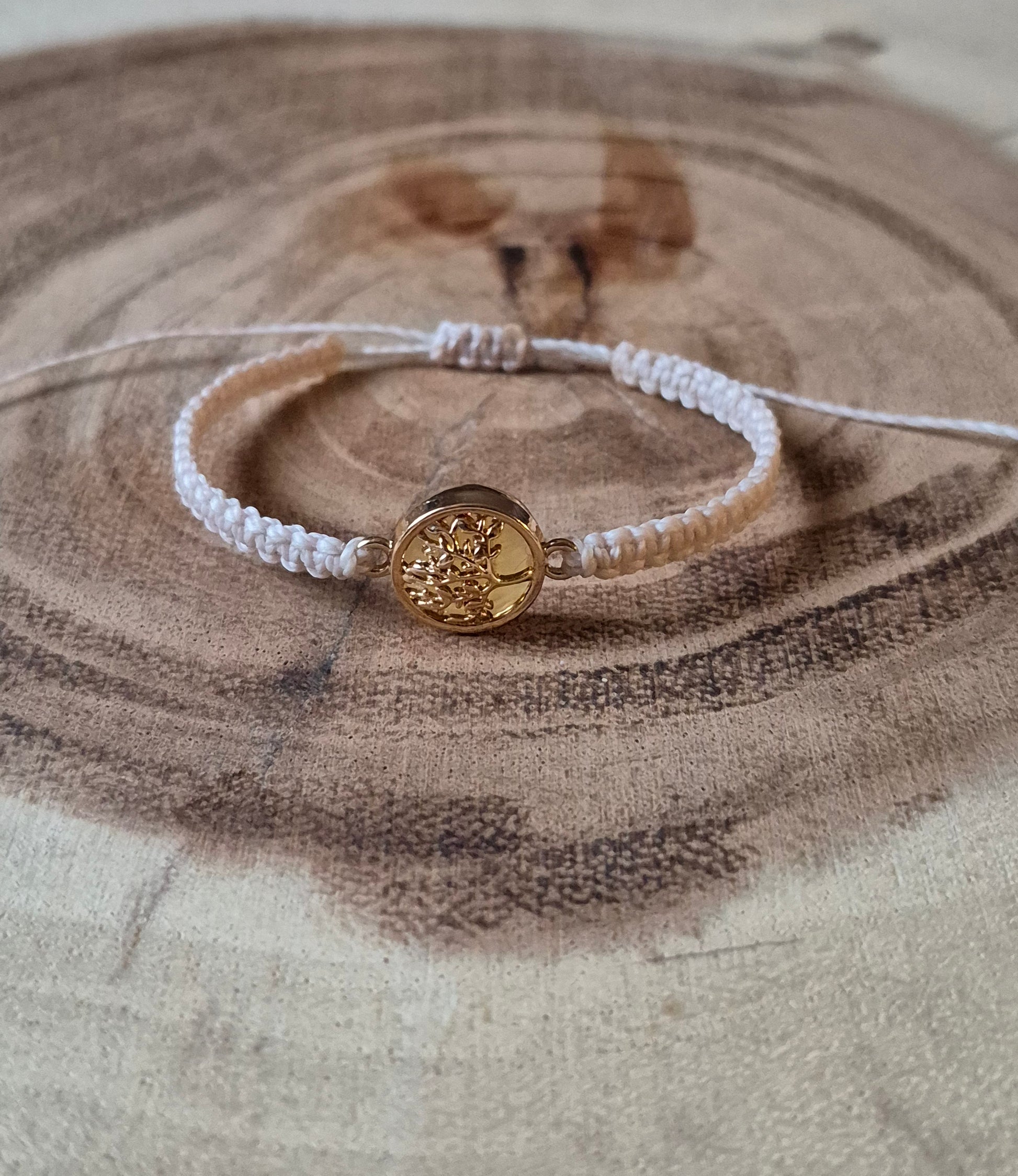 Dieses beige farbene Makramee Armband mit Lebensbaum Anhänger ist ein echter Hingucker – egal ob für den Alltag oder als kleines Geschenk.