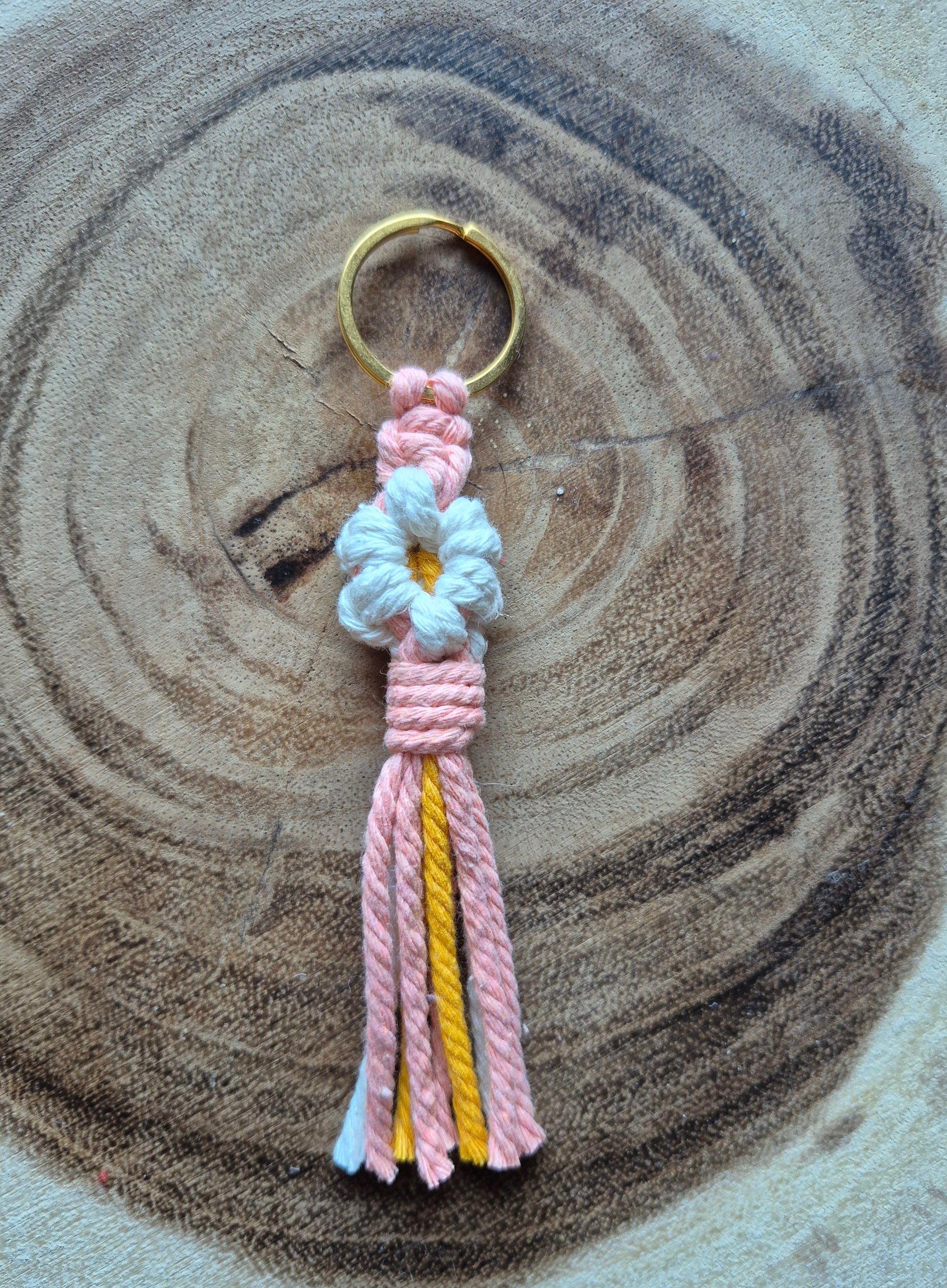 Stilvoller Blumen Schlüsselanhänger – handgeknüpft, leicht und perfekt als kleines Geschenk oder hübsches Detail für deine Tasche, deinen Schlüsselbund oder Rucksack.