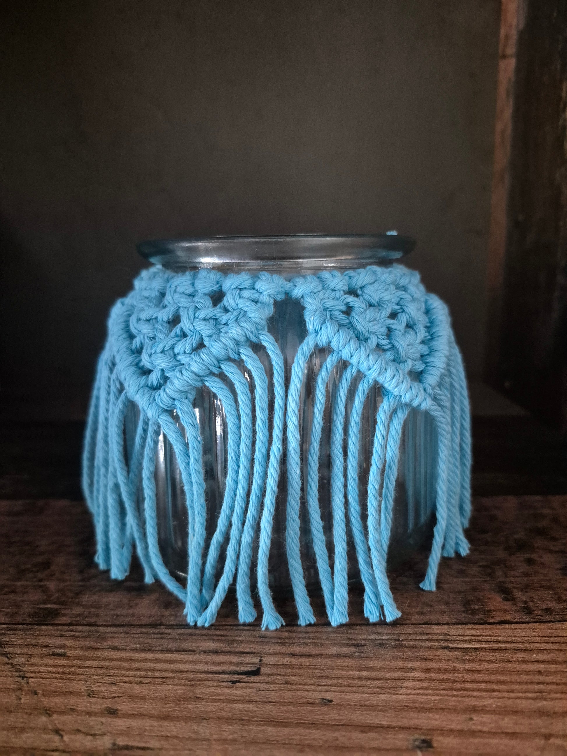 !Falls du ohne Glas wählst, sollte das Glas von dir ca. die selbe Größe haben, sonst passt das Makramee nicht!