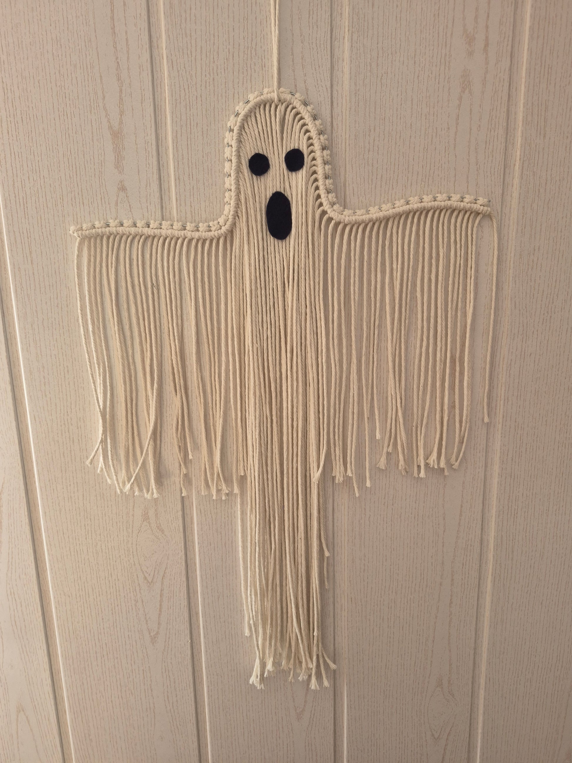 Verleihe deinem Zuhause einen Hauch von Spuk und Gemütlichkeit mit diesem liebevoll handgefertigten Makramee-Gespenst!