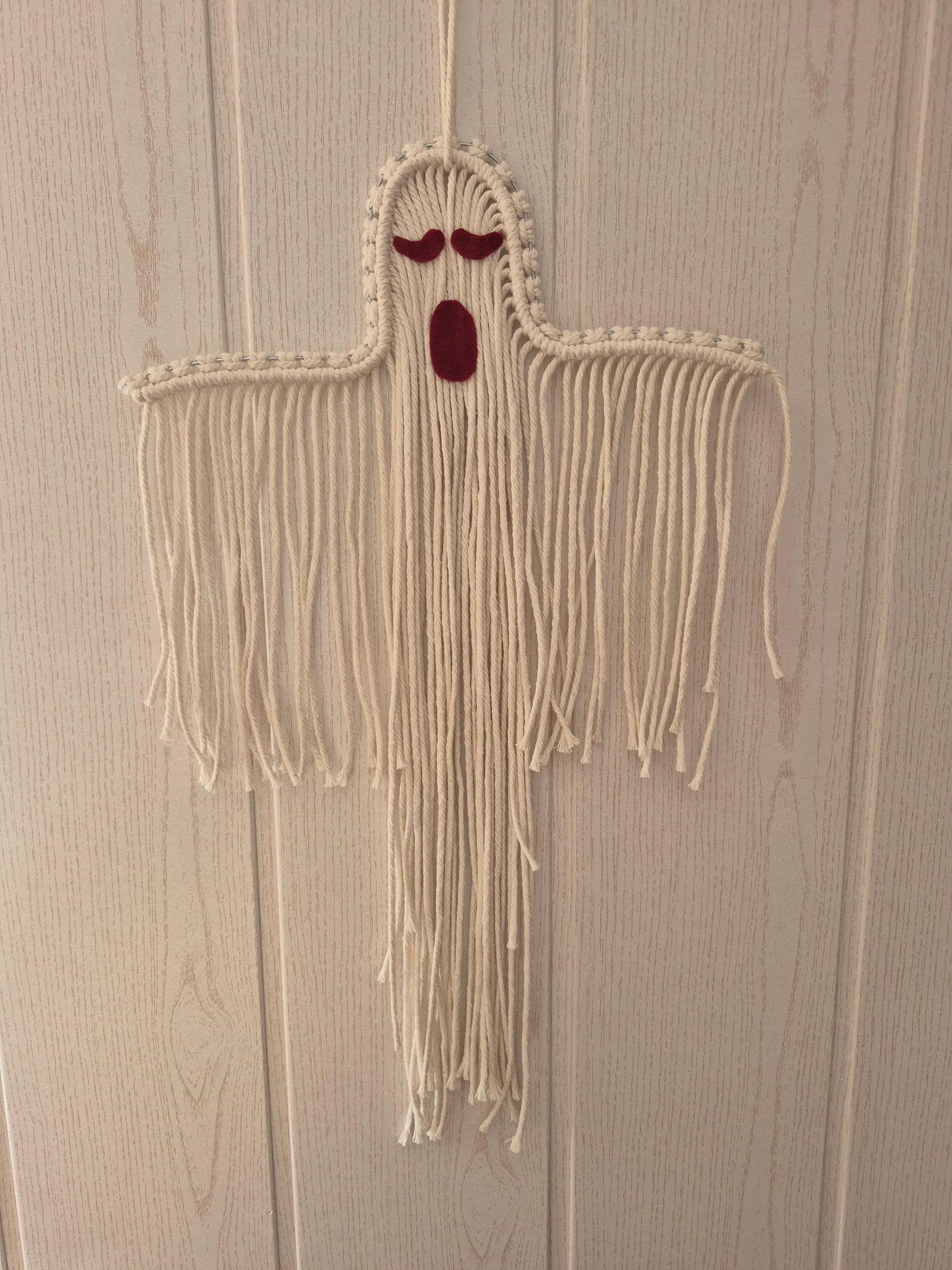 Verleihe deinem Zuhause einen Hauch von Spuk und Gemütlichkeit mit diesem liebevoll handgefertigten Makramee-Gespenst!