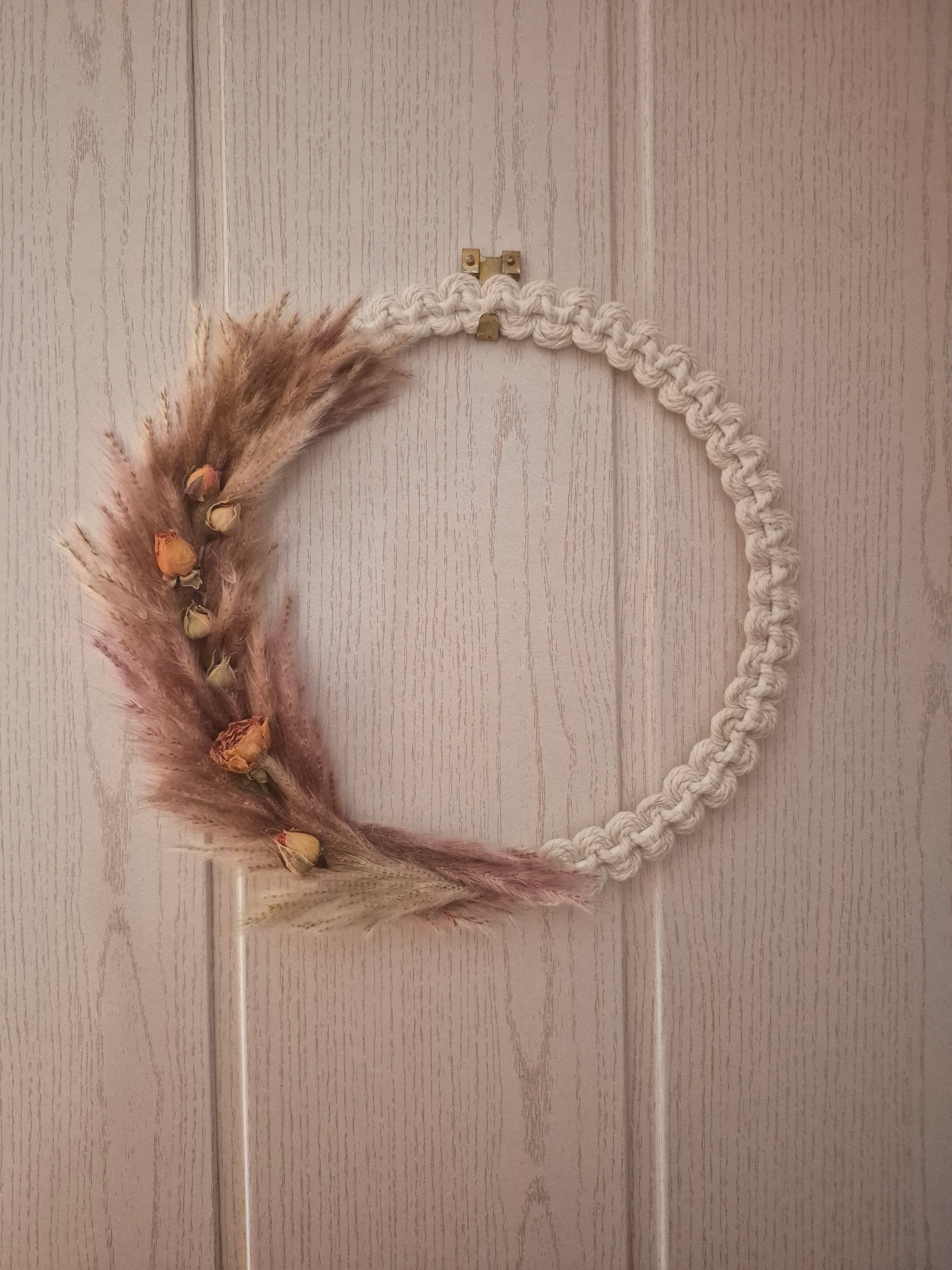 Handgemachter Makramee Trockenblumenkranz mit Rosen – natürlich schön & mit Liebe gemacht 🤍