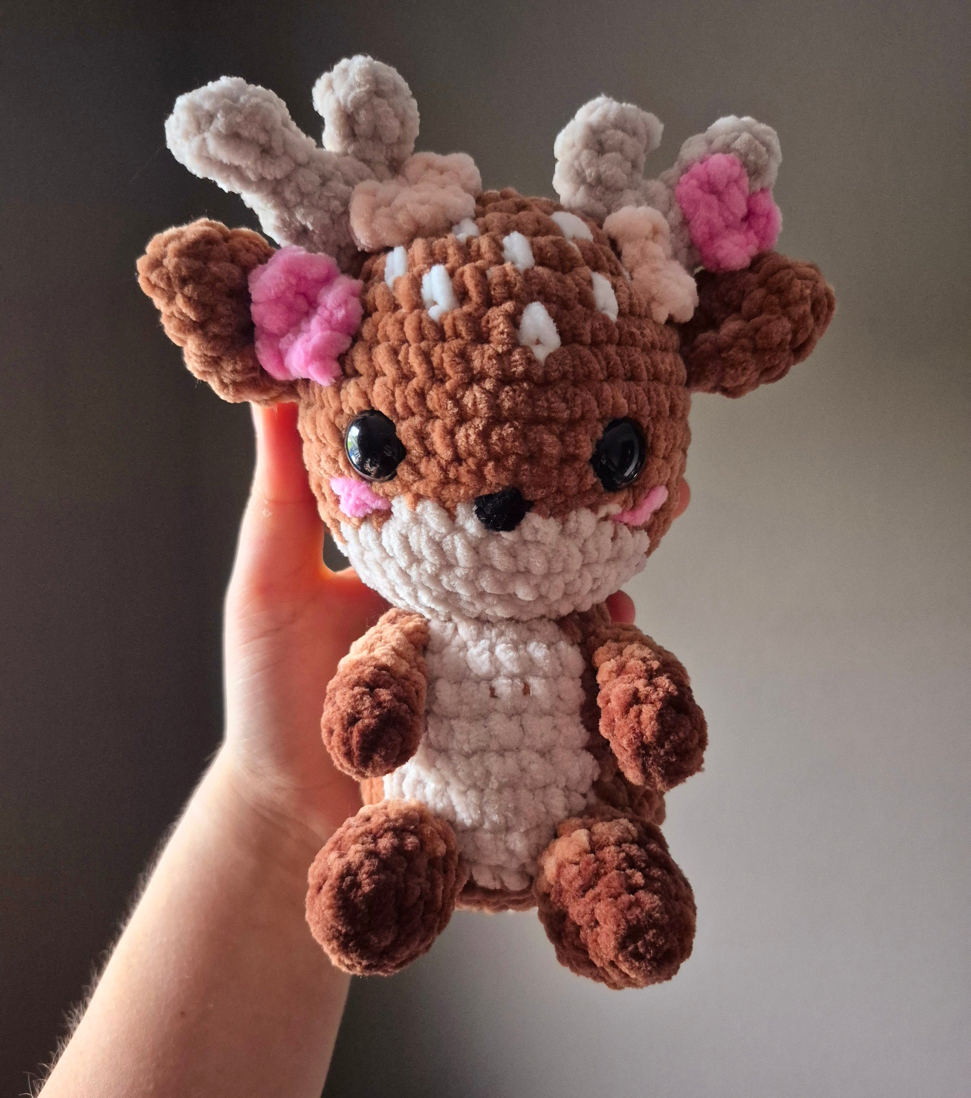 Dieses zauberhafte kleine Rehkitz wird nach deiner Bestellung mit viel Sorgfalt und Liebe zum Detail handgefertigt. Das weiche, plüschige Garn macht es besonders kuschelig, während die fein gearbeiteten Kirschblüten 🌸 an den Ohren dem Rehkitz einen einzigartigen, frühlingshaften Charakter verleihen. Mit seinen großen glänzenden Augen und den zarten Roséakzenten ist es ein echter Hingucker – ideal als Geschenk, besondere Deko oder herzallerliebstes Sammelstück für alle, die handgemachte Unikate lieben.