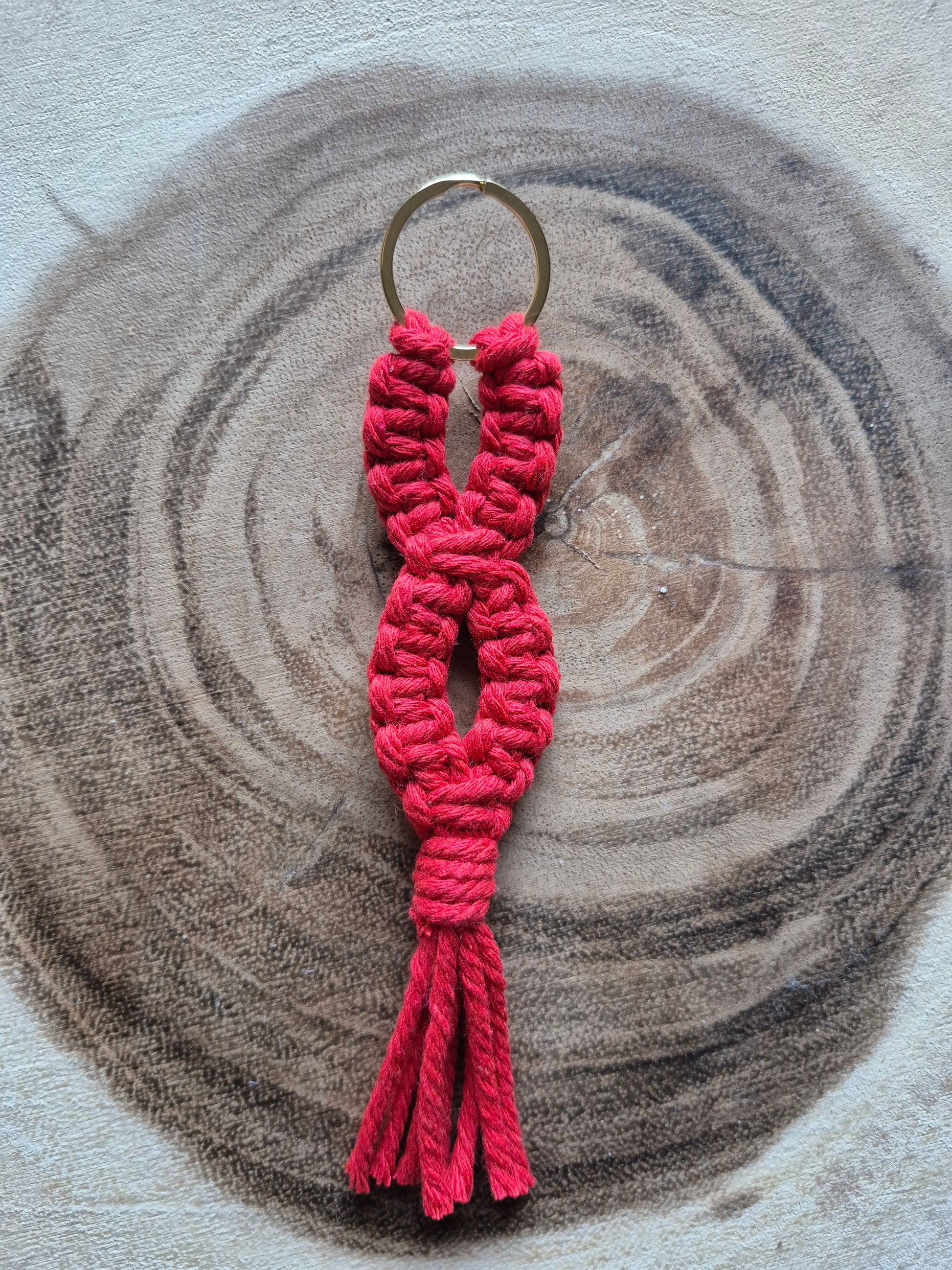 Dieser liebevoll geknüpfte Schlüsselanhänger in rot Ton ist nicht nur praktisch, sondern auch ein echter Hingucker. Durch das elegante Knotenmuster und den goldfarbenen Schlüsselring verleiht er deinem Schlüsselbund oder deiner Tasche einen besonderen Boho-Charme. Perfekt als kleines Geschenk oder um dir selbst etwas Schönes zu gönnen!