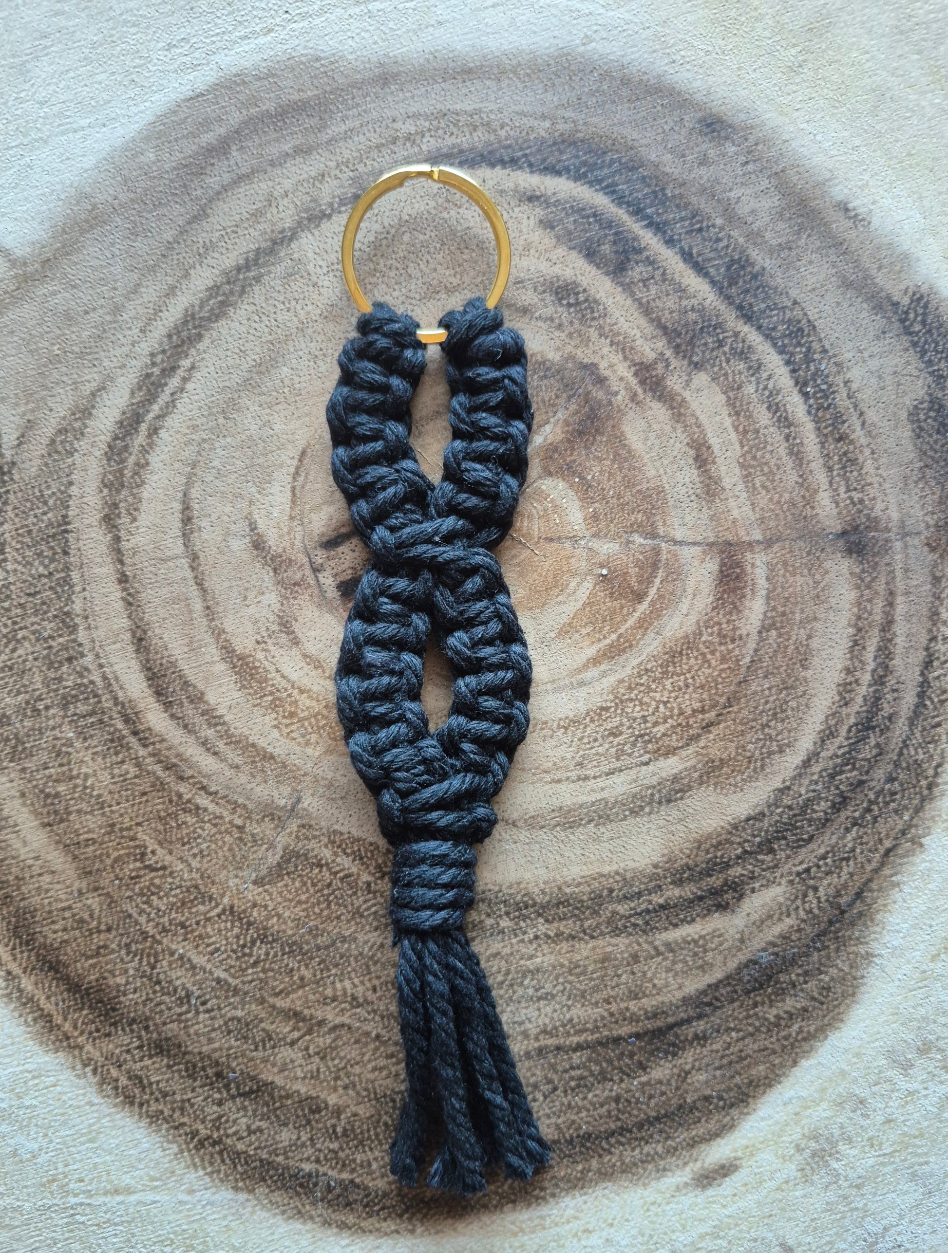 Dieser liebevoll geknüpfte Schlüsselanhänger in schwarz Ton ist nicht nur praktisch, sondern auch ein echter Hingucker. Durch das elegante Knotenmuster und den goldfarbenen Schlüsselring verleiht er deinem Schlüsselbund oder deiner Tasche einen besonderen Boho-Charme. Perfekt als kleines Geschenk oder um dir selbst etwas Schönes zu gönnen!